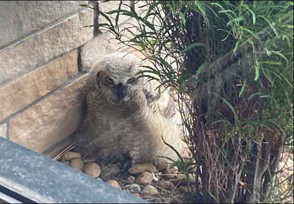 Our local owls have made their home in our maintenance shed for the past few years. They have built their nest in the building's upper roof beams, and this interior location provides them with safety and comfort during their nesting season. While local owls usually prefer tall cottonwood trees with many branches, the best way to support them in our environment is to allow them to nest in safety. We expect their eggs to hatch in the coming months!